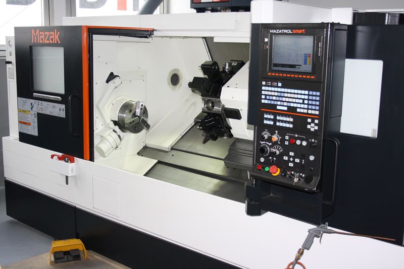 Derzeit steht uns für die Fertigung ein CNC Drehzentrum mit angetriebenen Werkzeugen zu Verfügung. Hierbei handelt es sich um eine CNC-gesteuerte Drehmaschine der neuen Generation, der Quick Turn Smart 300M von Mazak.| Datenblatt | |